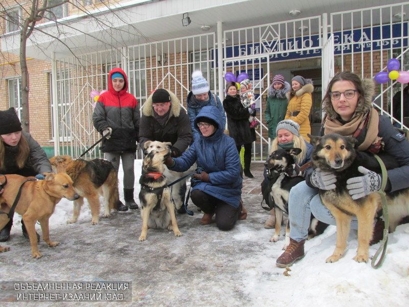 Суббота 4 февраля. На часах полдень. Морозно и ветрено. На улицах спальных кварталов района пока еще малолюдно. Зато у входа в библиотеку №162 на улице Якорной, дом 5, корпус 2, оживление. Вот к торцу дома подъехал автобус. Из него по очереди высаживается «хвостатый десант». Больше дюжины собак. Все псы на поводках, под присмотром хозяев.