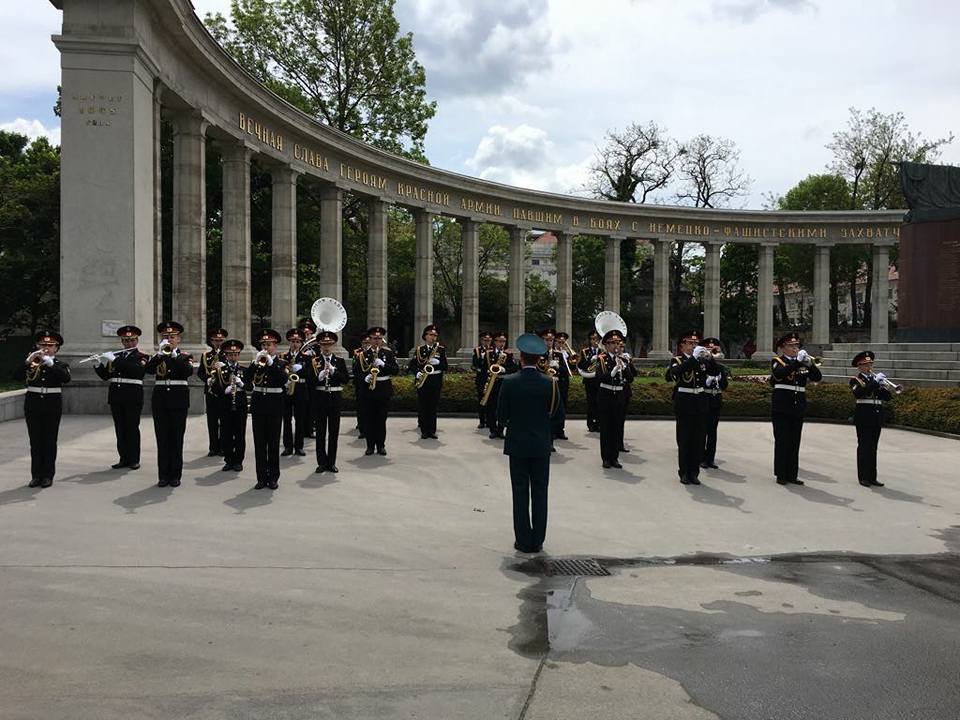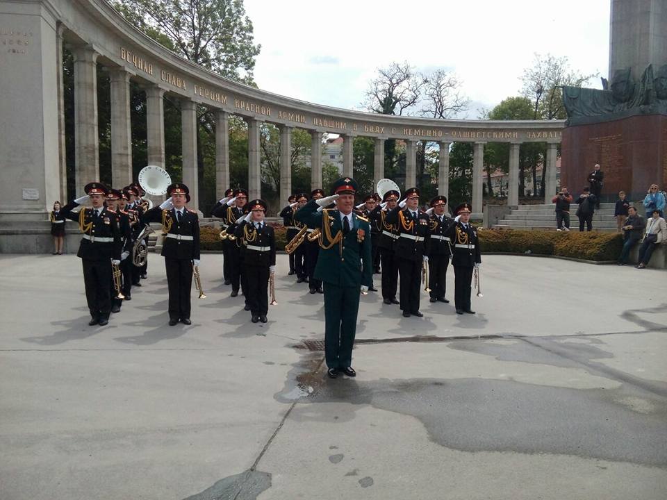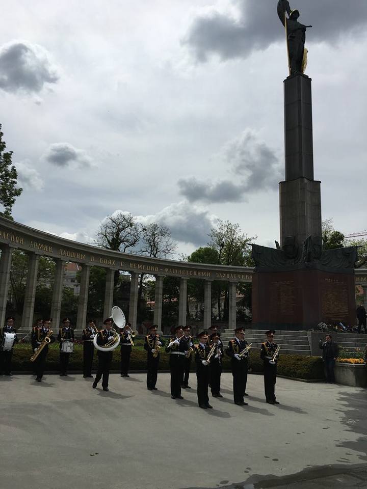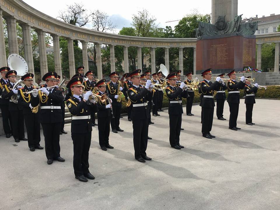 Победным маршем кадетский оркестр «дошел» и до Вены, где на Центральном кладбище принял участие в торжественном возложении венков и живых цветов к мемориалам советским воинам, погибшим при освобождении Австрии от нацизма. На церемонии собрались дипломаты и военные атташе России, стран СНГ держав-победительниц, участники антигитлеровской коалиции, ветераны Великой Отечественной войны и российские соотечественники.