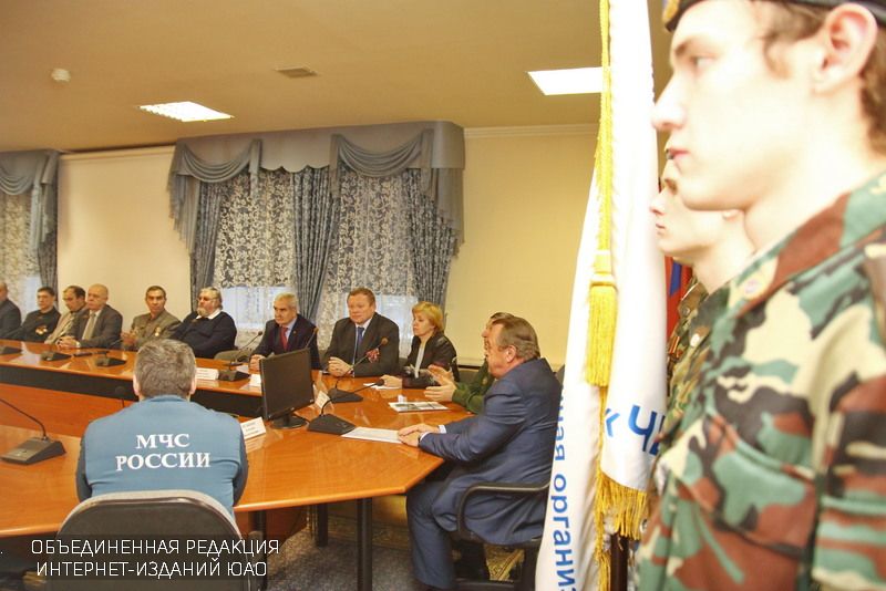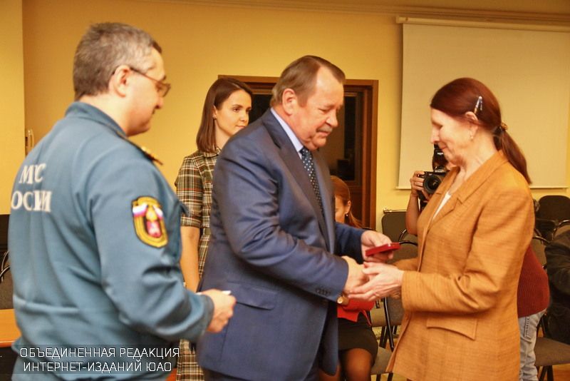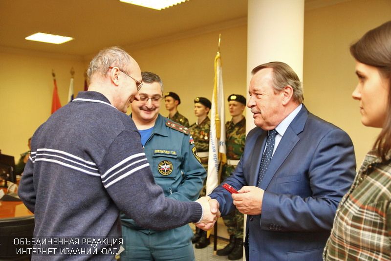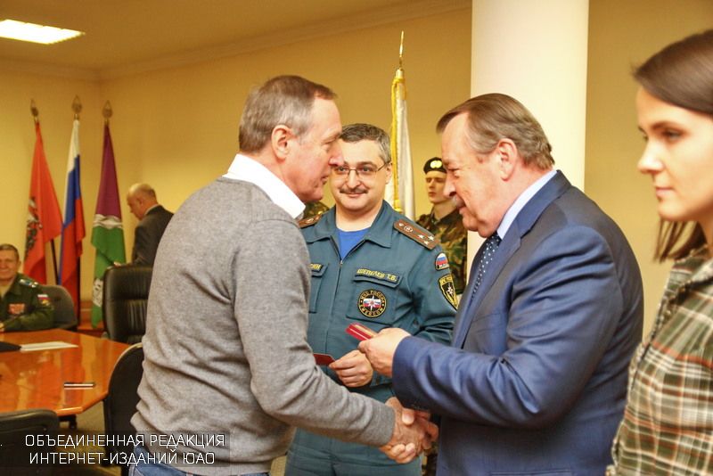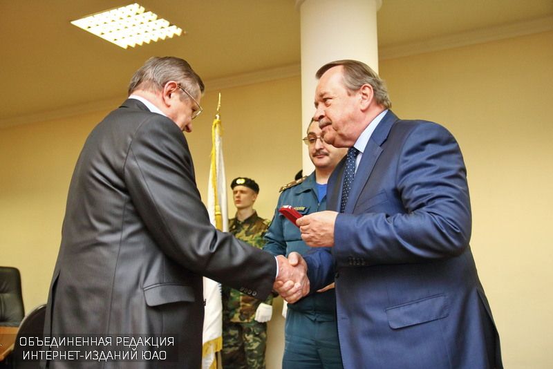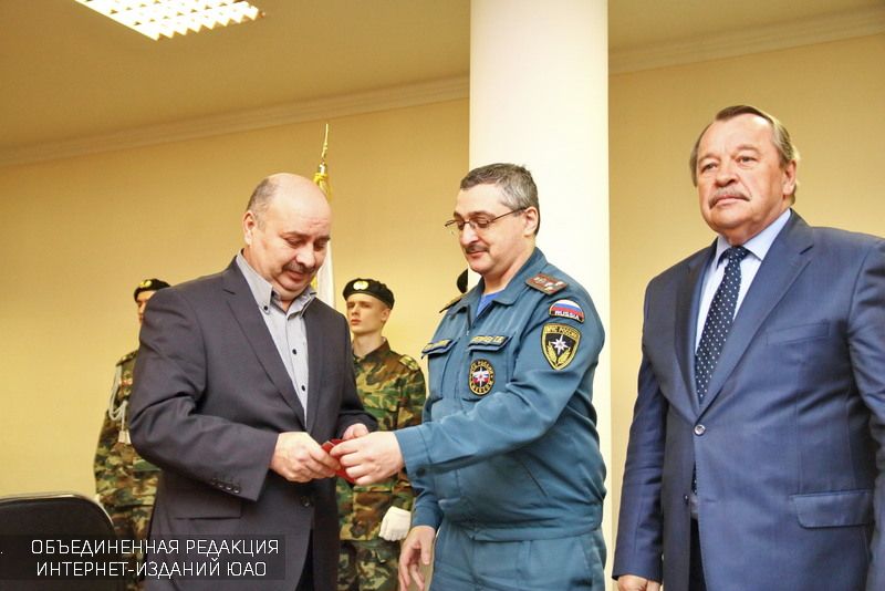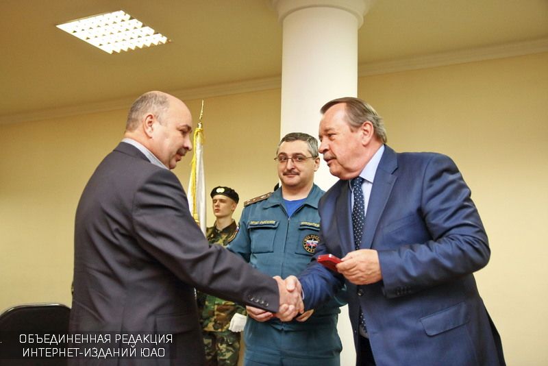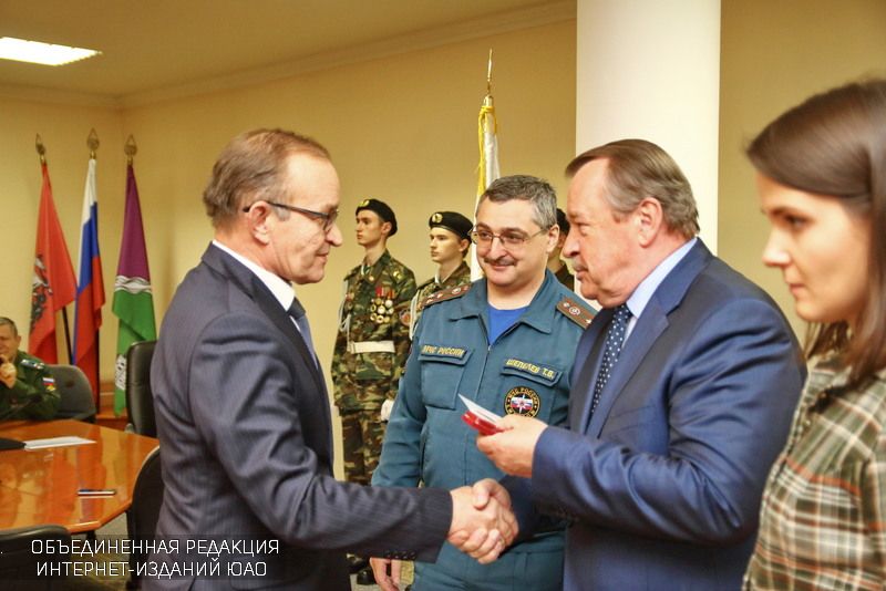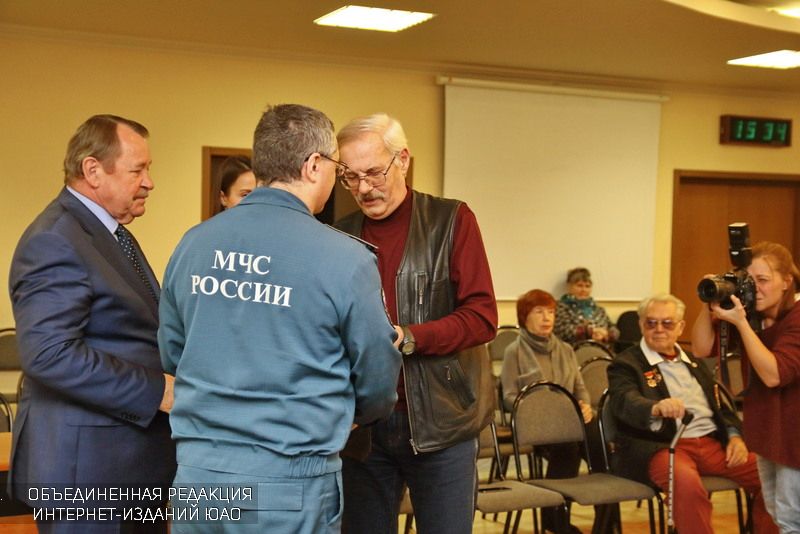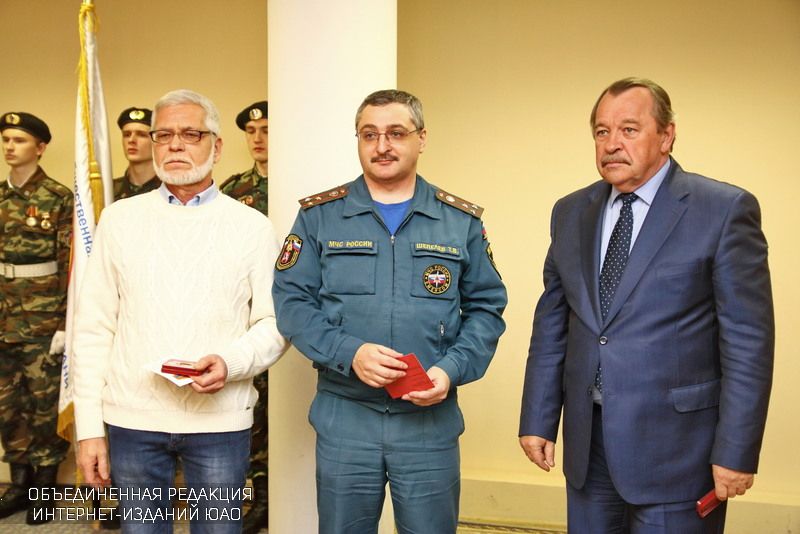 Чернобыльцы получили медали из рук перфекта ЮАО Алексея Челышева и замначальника окружного управления МЧС Тимура Шепелева