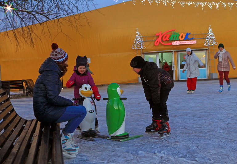 Кроме того, для тех, кто только учится кататься на коньках, предлагается услуга проката тренажера для обучения «Пингвин» и «Медведь».