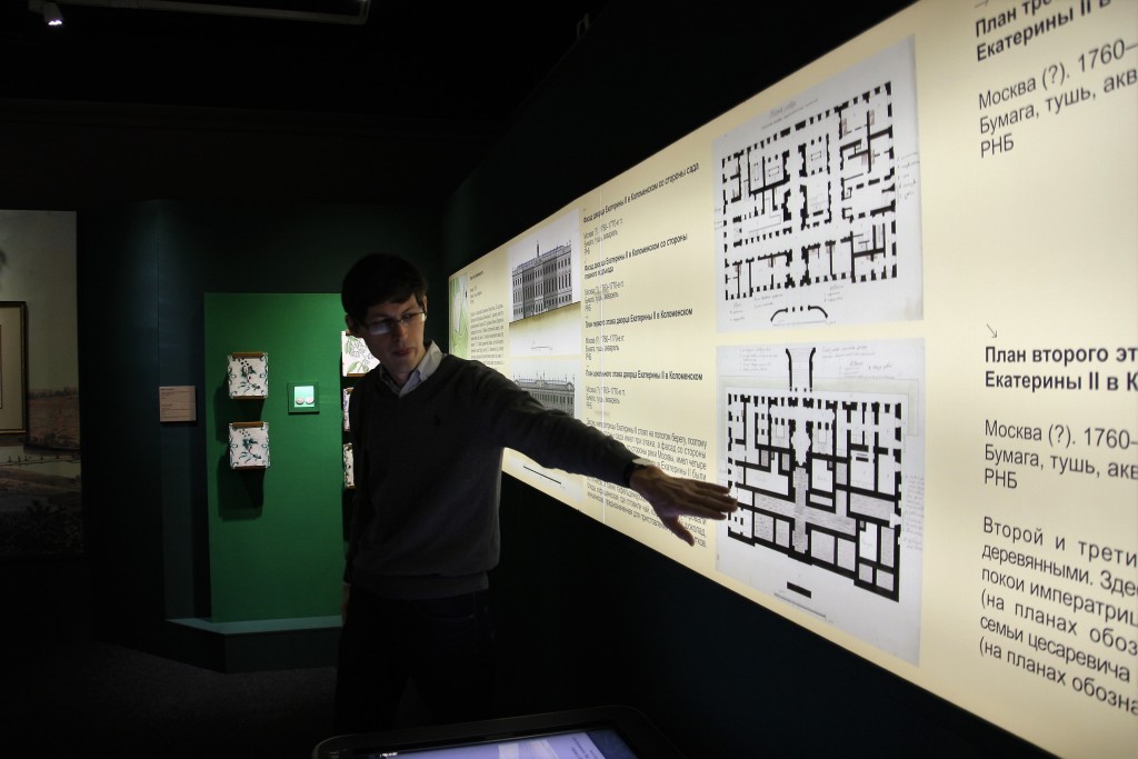 На выставке впервые экспонируется уникальный комплекс чертежей екатерининского дворца, который так и не был построен. Также здесь представлены подлинные документы, рассказывающие о достижениях во внутренней и внешней политике, которые отразились на художественных вкусах, праздничной и повседневной культуре императорского двора.