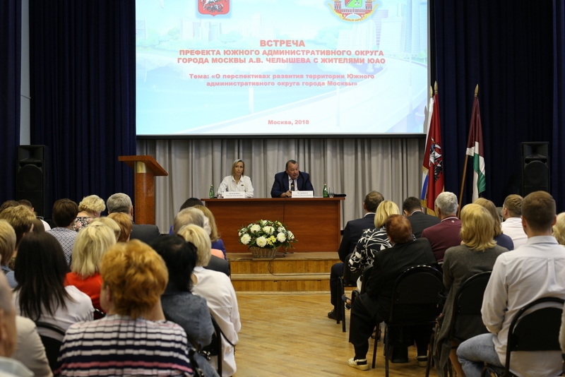 Встреча жителей Южного административного округа с префектом Алексеем Челышевым, посвященная перспективам развития ЮАО, состоялась 23 мая в большом зале школы №1770 на ул. Коломенская набережная, д. 20. Во встрече приняли участие около 300 москвичей.