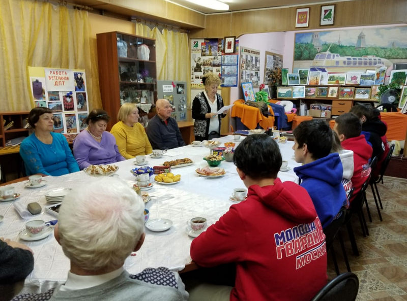 Представители старшего поколения угостили своих юных гостей чаем, за которым и завязалась дружеская беседа несмотря на значительную разницу в возрасте. Они свободно делились друг с другом своими мыслями по поводу Великой Отечественной войны, а также прочитали стихи, посвященные ей.