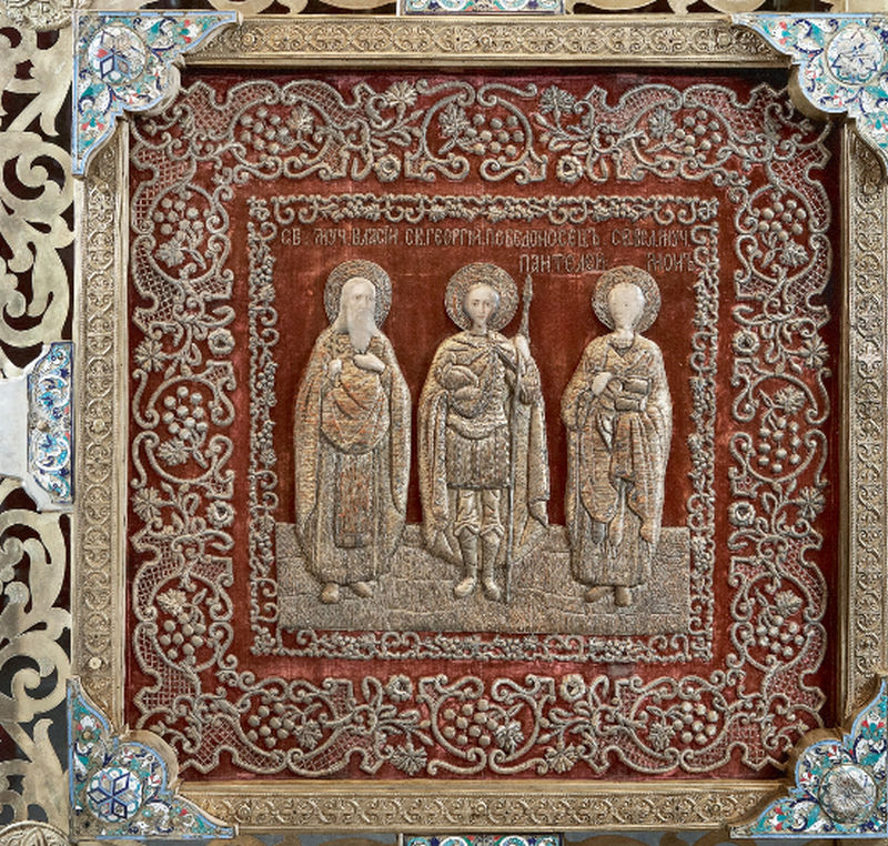 — Памятники с сюжетным шитьем — это произведения элитарного искусства, которые создавались в мастерских аристократов: требовались очень дорогие привозные материалы, знаменщики (это художники, которые писали икону на ткани), штат искусных мастериц, имея которых можно было подняться по социальной лестнице, настолько это было престижно. И конечно сами ткани, к которым русский человек относился очень бережно и любовно. Не забывайте, что до императора Петра I ткани были исключительно привозными, не было налажено собственное шелкоткацкое производство. Ткани перешивали, передавали по наследству, светское платье вкладывали в храмы и монастыри, в допетровские времена из одних и тех же тканей шили церковную и светскую одежду. И даже в XVIII веке императрицы жертвовали свои платья на переделку, и они получали вторую жизнь уже в другом качестве. Тогда эти ткани были на вес золота. Со второй половины XVIII века тяжелые, затканные серебром ткани стали использовать в интерьере как декор и обивку и по-прежнему для нужд церкви.