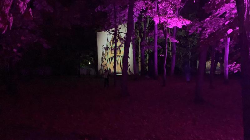 19-40 Святящиеся деревья создают атмосферу настоящей сказки, слышны «раскаты грома», а над головой плывут киты. Компанию китам составили единороги, летучие голландцы и… баба Яга на ступе. Супер! Такого в прошлом году не было.