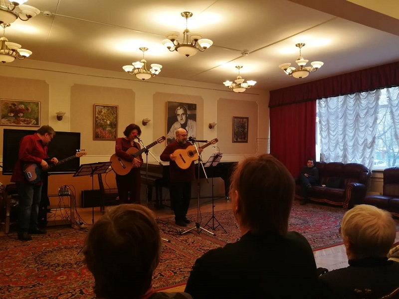 Так, концерт ансамбля «Малинада» прошел в субботу, 23 ноября. Собравшиеся восторженно слушали чарующий голос вокалистки Лидии Щербаковой — она же играла на гитаре. Ее партию дополнял Александр Медведский, а Илья Робинов аккомпанировал им на бас-гитаре. Вместе трио исполнило свои авторские песни; гости библиотеки поблагодарили артистов за душевную атмосферу.