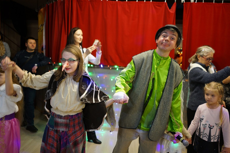 Ребятам показали праздничные спектакли, поводили с ними хороводы. Провели все это сказочные персонажи – Баба-Яга и Леший. Ведущей новогоднего концерта оказалась русская красавица Машенька. И, конечно, новогоднее мероприятие не обошлось без главных героев – к детям в гости пришли Дед Мороз и Снегурочка.