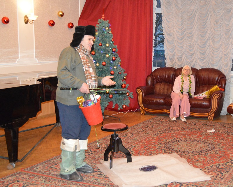 Гости библиотеки увидели сценические постановки, посвященные Новому году. Кроме того, артисты выступили с шутками в формате stand up и привлекли зрителей к участию в танцевальных, песенных номерах.