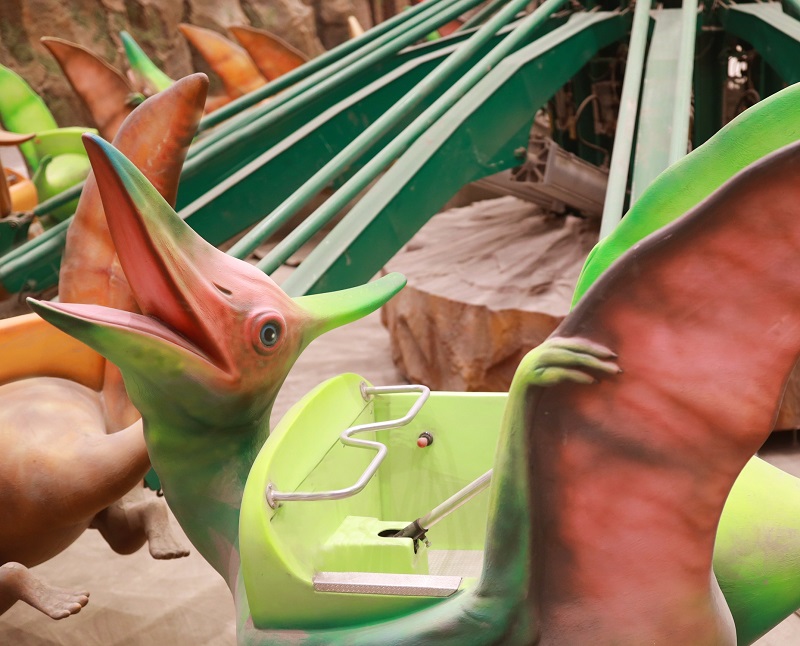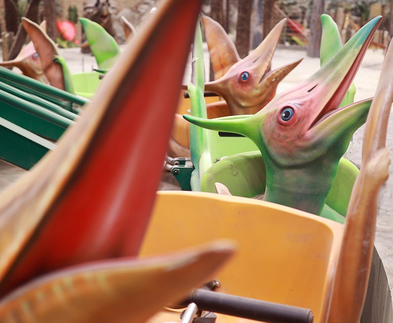 Речь идет о карусели «Птеродактили». Аттракцион будет интересен маленьким посетителям и их родителям. Желающие поднимутся над землей и смогут разглядеть царство джунглей.