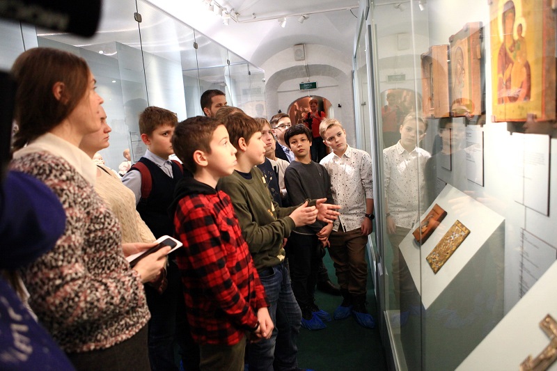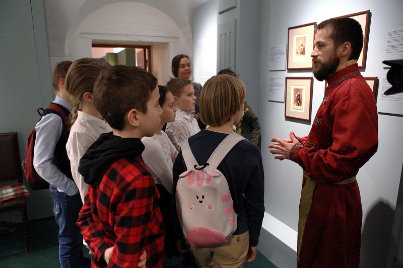 Школьник вместе с одноклассниками познакомился с проектом «Коломенского» и «Эрмитажа» — «Детский мир семьи императора Николая II». Ребята узнали о жизни потомков монарха.