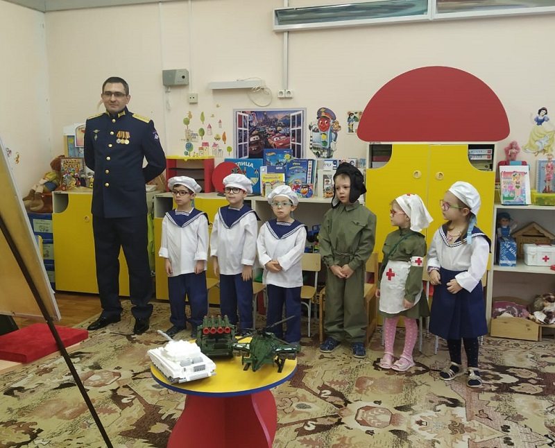Мероприятие устроили в честь приближающегося праздника День защитника Отечества. С капитаном встретились воспитанники группы № 8 «Маячок» здания «Жемчужинка».