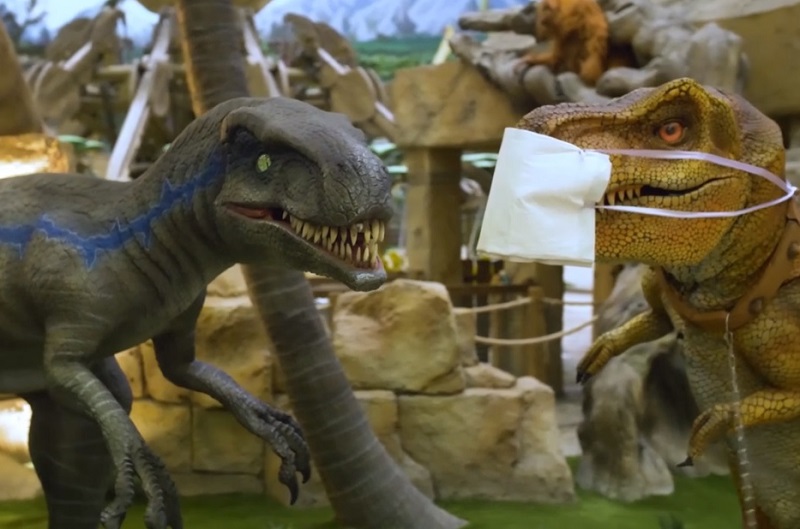 Напоминание о средствах личной защиты сделали работники развлекательного парка «Остров Мечты» с помощью необычного видео — на нем динозавры ходят в масках. Ролик опубликовали на страничке московского диснейленда ВКонтакте.