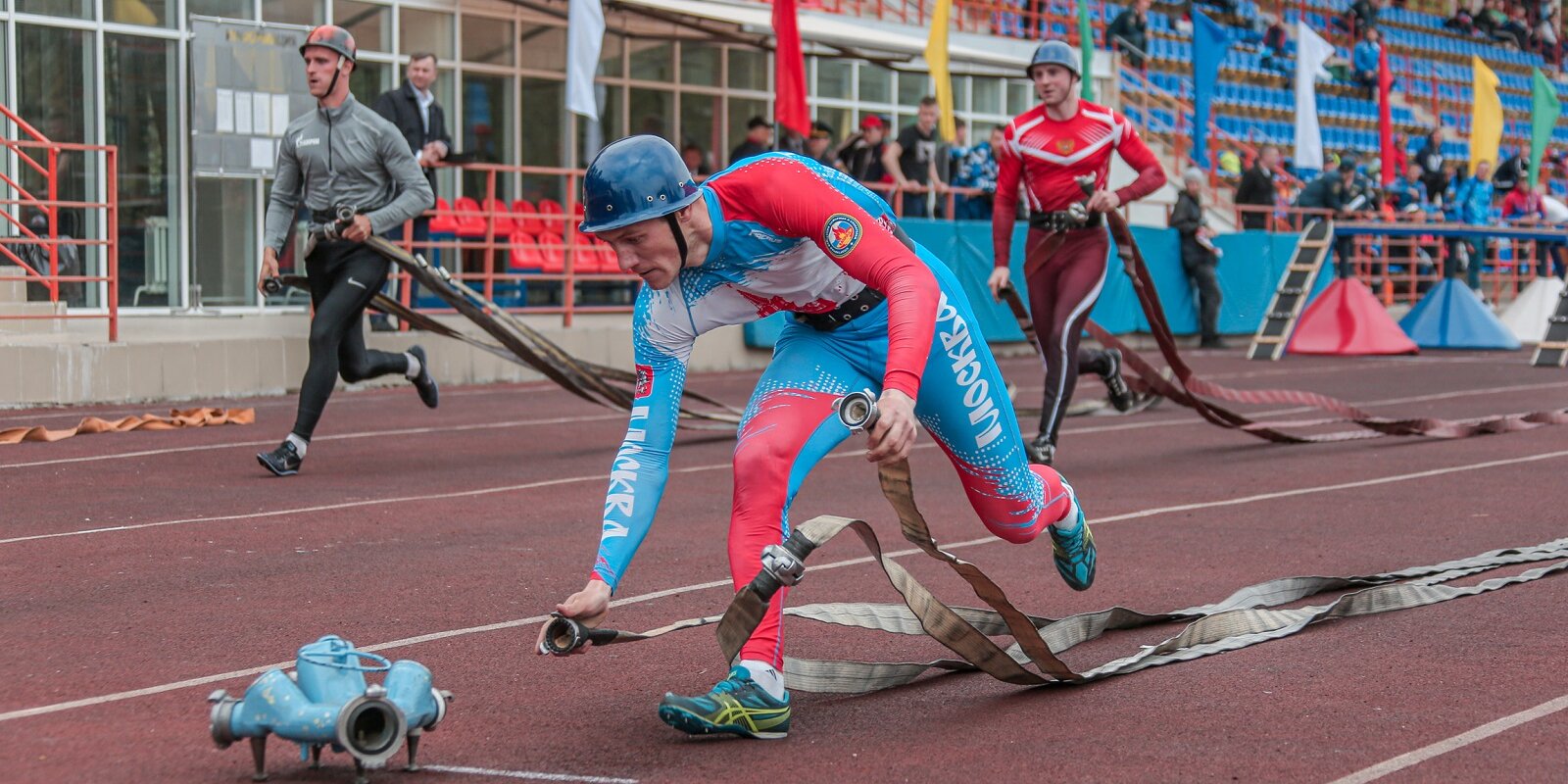 В ходе соревнований команды проходят четыре этапа: «Штурмовая лестница», где необходимо подняться на время в окно второго или четвертого этажа учебной башни, используя лестницу; «Пожарная эстафета», включающий подъем на крышу «домика», преодоление забора и бревна, присоединение и прокладку рукавной линии, а также тушение огня; «Полоса препятствий», при прохождении которого спортсмены преодолевают забор, бегут по бревну, соединяют рукава между собой, а затем присоединяют к разветвлению рукавной линии; этап «Боевое развертывание», в ходе которого участники соединяют магистральную линию с мотопомпой, прокладывают две рабочих линии, забирают воду из резервуаров и подают ее до наполнения емкости двух мишеней (по 10 л каждая).