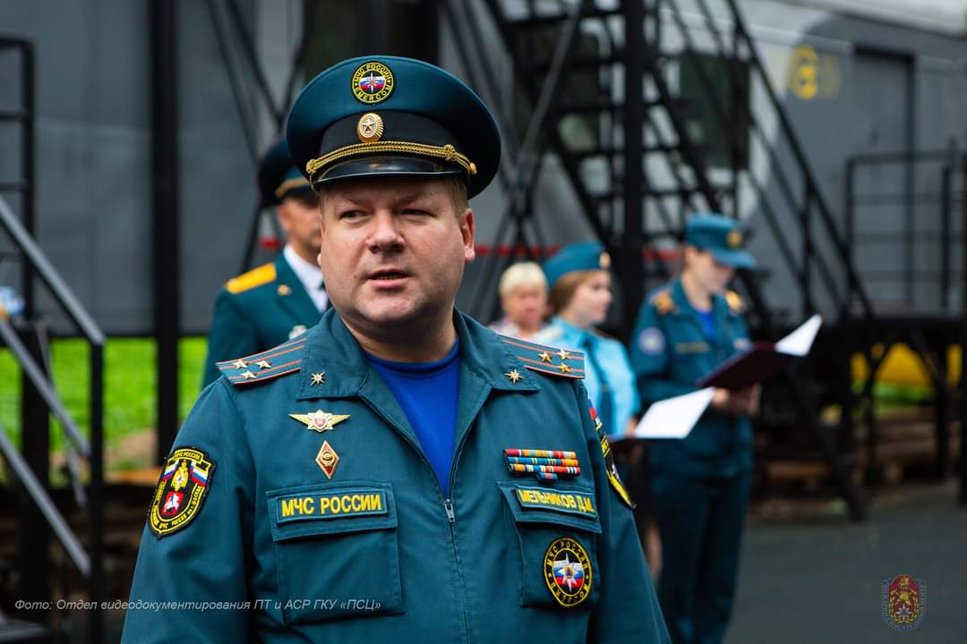 Начальник Управления по ЮАО Главного управления МЧС России по г. Москве полковник внутренней службы Мельников Д.М. выступил с приветственным словом перед студентами и первокурсниками отделения «Нагатино-1».