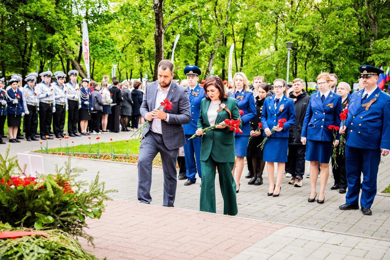 Собравшиеся почтили память погибших героев минутой молчания и возложили цветы к мемориалу. Глава Совета депутатов муниципального округа Нагатинский Затон Роман Винокуров в своем выступлении подчеркнул неоценимый вклад ветеранов в Великую Победу.