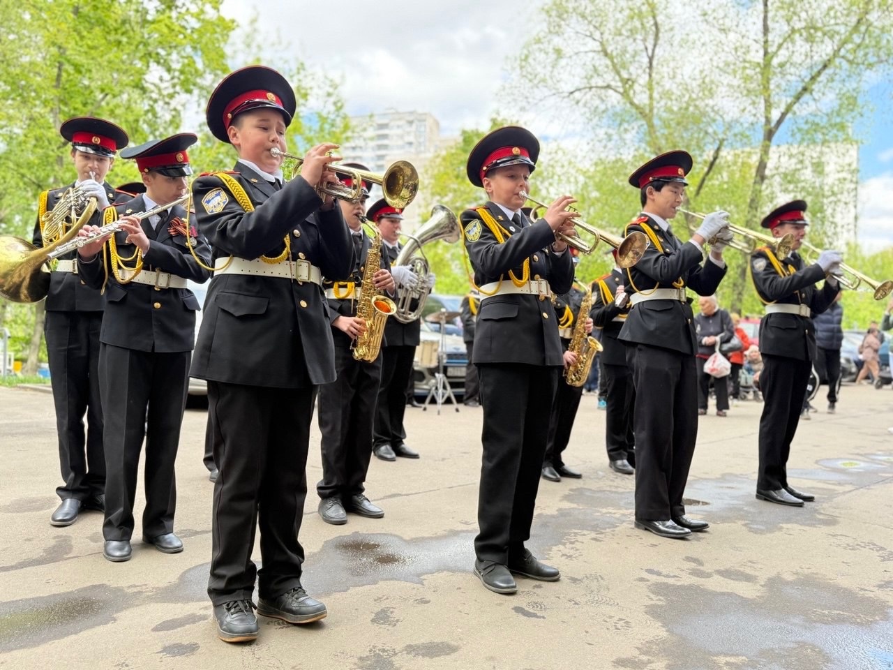 Также в честь 80-й годовщины Победы в Великой Отечественной войне духовой оркестр школы № 1770 выступил с торжественной программой у домов ветеранов в Нагатинском Затоне, чтобы поздравить их с праздником Победы. Музыканты исполнили любимые всеми композиции военных лет и патриотические мелодии. Музыка тронула всех присутствующих до глубины души. Строевая группа под руководством Анатолия Князева вынесла флаги России и города Москвы, а также знамя Победы.
