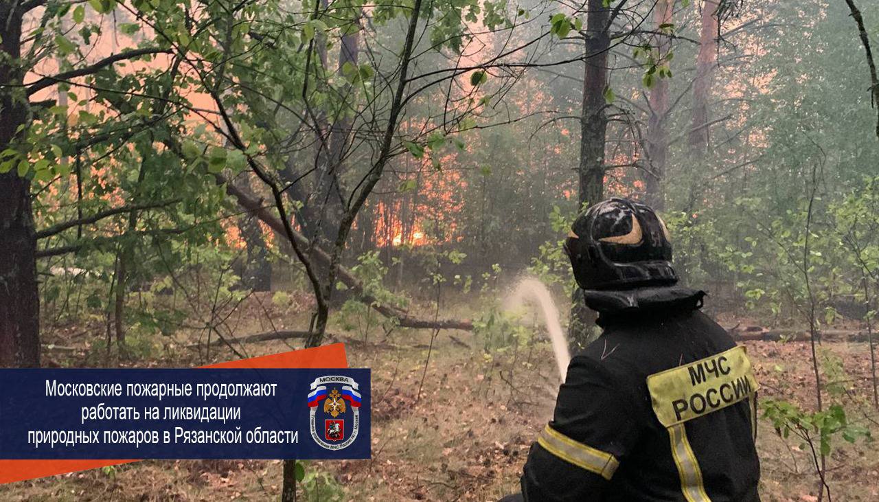 Московские пожарные продолжают работать на ликвидации природных пожаров в Рязанской области