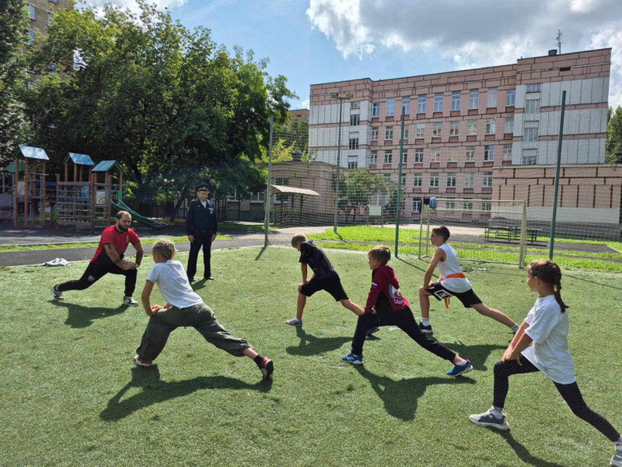 Член Общественного совета при УВД по ЮАО и участковый уполномоченный провели для детей спортивно-профилактическое мероприятие