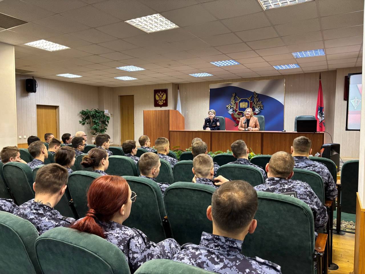 Cлушатели Центра профессиональной подготовки имени Героя Советского Союза С.Х. Зайцева Главного управления Росгвардии по городу Москве встретились с полковником Службы внешней разведки в отставке, Еленой Вавиловой.